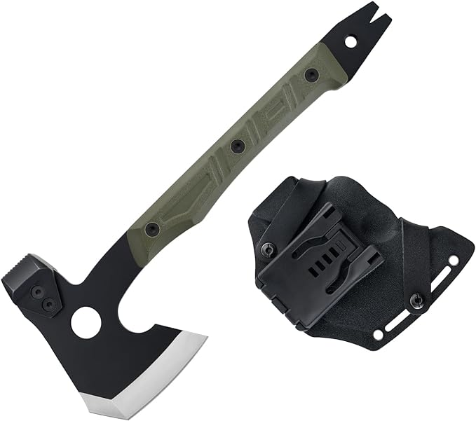 OKNIFE Otacle A1 Survival Hatchet & Camping Axe, 4 in 1 Full Tang Tactical Axe, G10 Non-Slip Grip Tomahawk with Durable Kydex Sheath (OD Green)