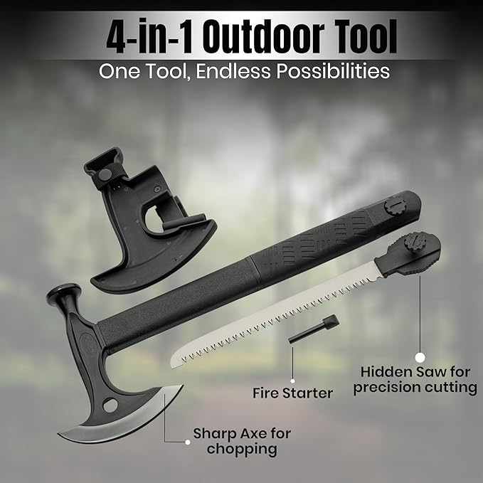 14" Axe with Saw Knife and Protective Box for Outdoor Use, Camping, Hiking, Garden -