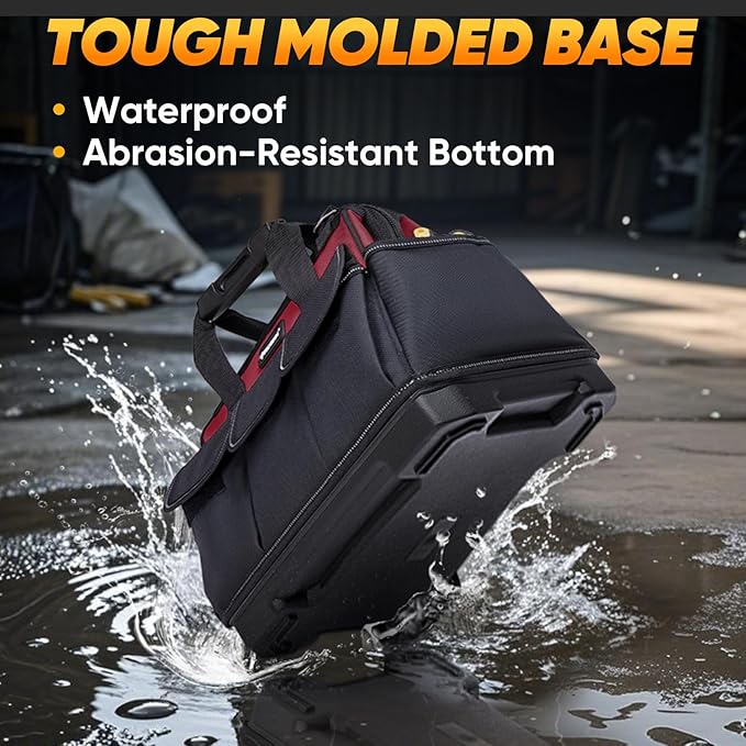 TICONN Heavy Duty Tool Bag with Multi-Pockets, Portable Tool Box Organizer Storage Bag, with Adjustable Shoulder Strap and Ergonomic Handle (Red, 16" Molded Base) -