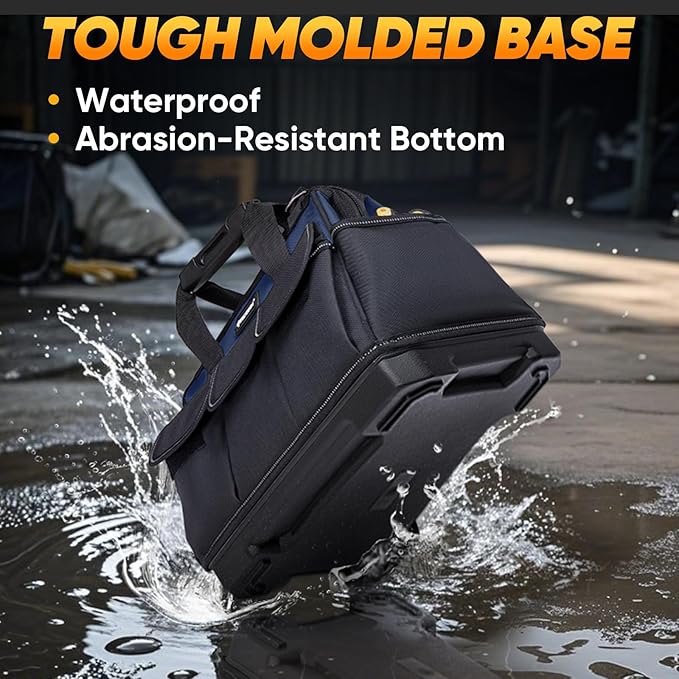 TICONN Heavy Duty Tool Bag with Multi-Pockets, Portable Tool Box Organizer Storage Bag, with Adjustable Shoulder Strap and Ergonomic Handle (Black, 16" Molded Base) -