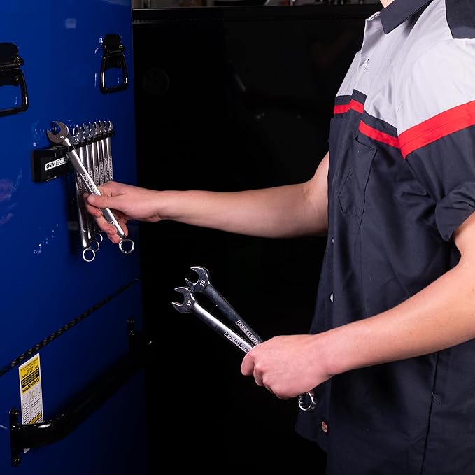 OEMTOOLS 22513 Magnetic Wrench Holder and Tool Organizer, Magnet Holds Up To 10 Wrenches To Most Metal Surfaces, SAE and Metric, 9.25 Inch Magnetic Tool Holder For Shop Or Garage, Black