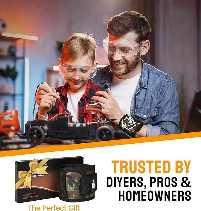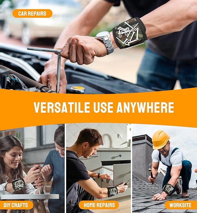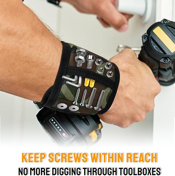 HiRui Magnetic Wristband for Tools – Ultra-Strong 15 Neodymium Magnets Hold Screws, Nails & Bits, Dual Pockets – Hands‑Free for DIY, Home Repairs, Auto – Gift‑Ready for Dad, Husband, Grandpa (CAMO) -