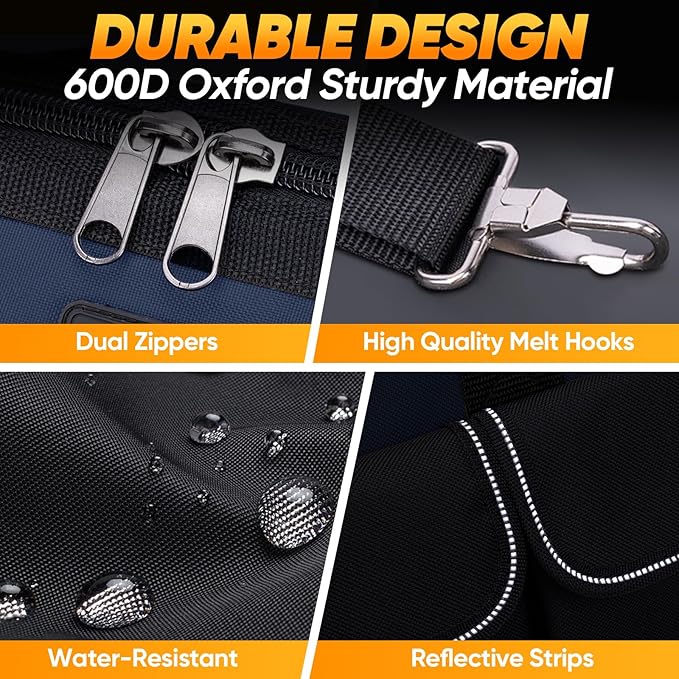 TICONN Heavy Duty Tool Bag with Multi-Pockets, Portable Tool Box Organizer Storage Bag, with Adjustable Shoulder Strap and Ergonomic Handle (Blue, 12" Standard Base) -