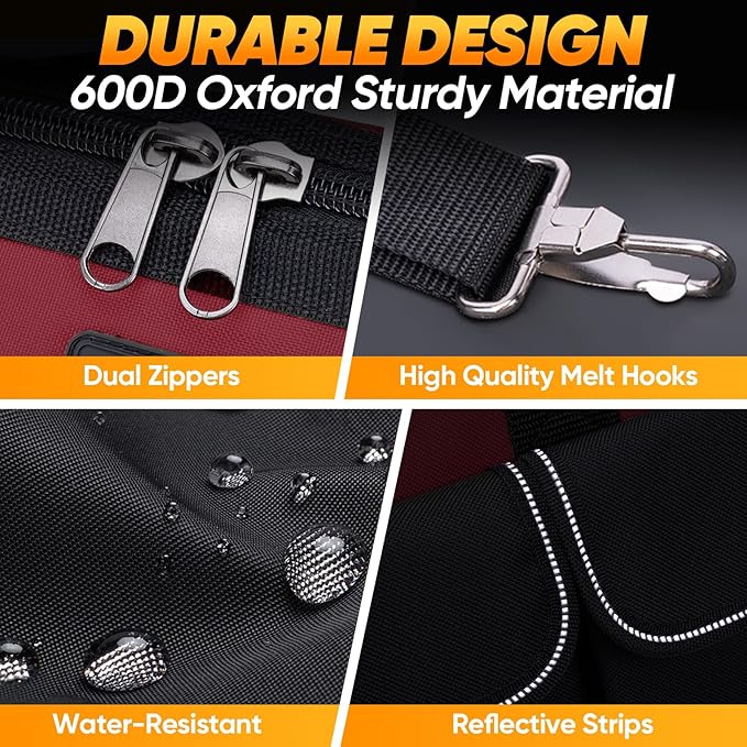 TICONN Heavy Duty Tool Bag with Multi-Pockets, Portable Tool Box Organizer Storage Bag, with Adjustable Shoulder Strap and Ergonomic Handle (Red, 16" Standard Base) -