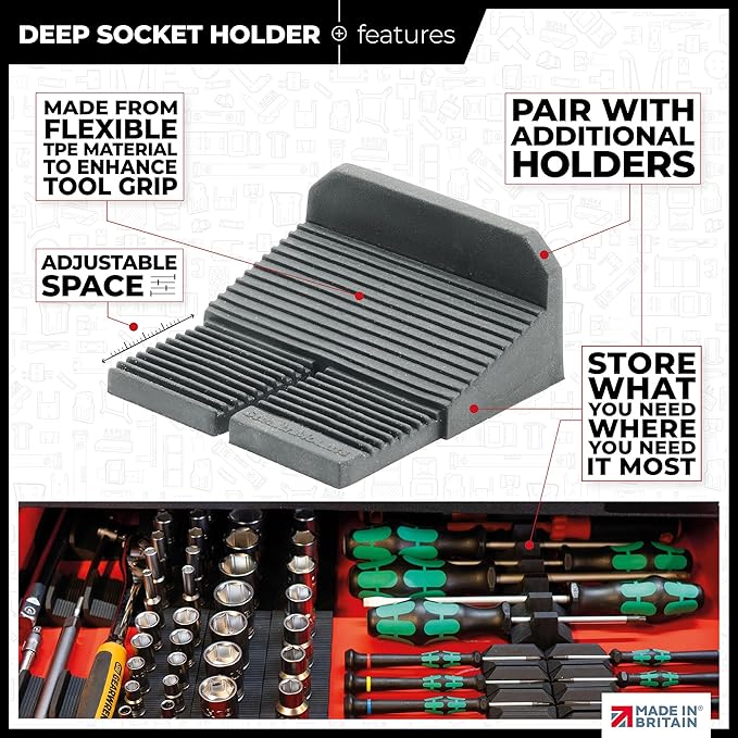 StealthMounts Drawer Hive 3/8" Socket Holder – 10 Pack | Modular Drawer Tool Organiser | Injection-Moulded TPE | Made in The UK -