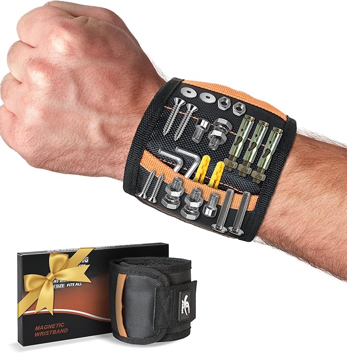 HiRui Magnetic Wristband for Tools – Ultra-Strong 15 Neodymium Magnets Hold Screws, Nails & Bits, Dual Pockets – Hands‑Free for DIY, Home Repairs, Auto – Gift‑Ready for Dad, Husband, Grandpa (Black) -