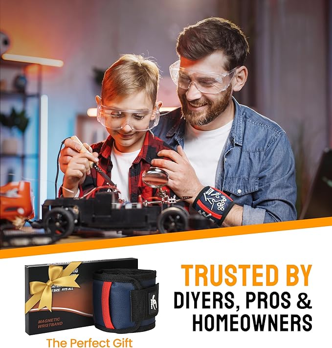HiRui Magnetic Wristband for Tools – Ultra-Strong 15 Neodymium Magnets Hold Screws, Nails & Bits, Dual Pockets – Hands‑Free for DIY, Home Repairs, Auto – Gift‑Ready for Dad, Husband, Grandpa (Blue) -