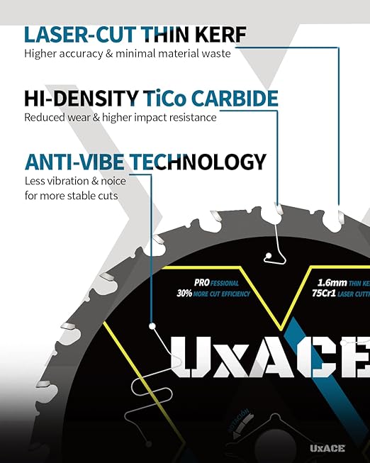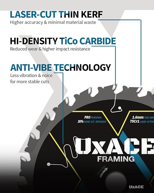 6-1/2-Inch 24-Tooth Circular Saw Blade with 5/8-Inch Arbor, Framing Wood Cutting, Carbide Tip, Thin Kerf, for Plywood, MDF, OSB, Laminated -