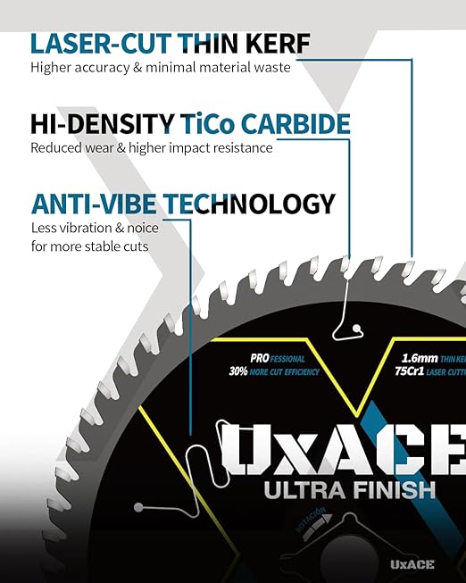 6-1/2-Inch 60-Tooth Circular Saw Blade with 5/8-Inch Arbor, Ultra Finish Wood Cutting, Carbide Tip, Thin Kerf, for Plywood, MDF, OSB, Laminated, 2 Pack -
