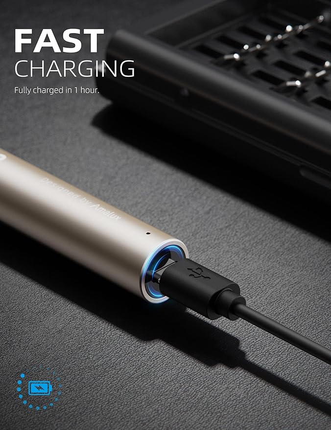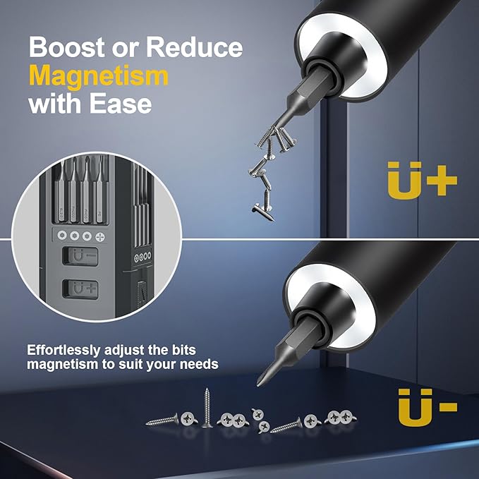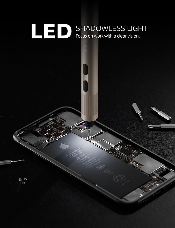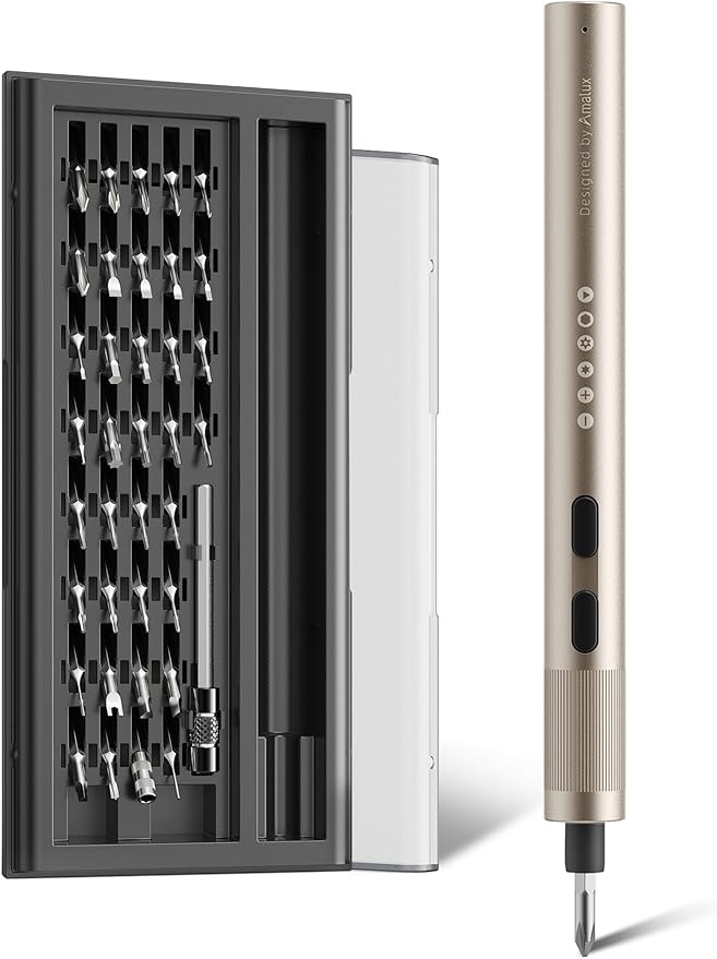 Mini Electric Screwdriver Set, 37 Self-Magnetic Bits, Dual Mode Electric/Manual, 3.7V Rechargeable, Max 3 N.m Torque, Clip Storage Case, Repair Tool for Phone Laptop Camera Watch Electronics - Beige -
