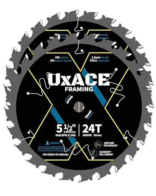 5-1/2-Inch 24&40-Tooth Circular Saw Blade with 5/8-Inch Arbor, Framing & Ultra Finish Wood Cutting, Carbide Tip, Thin Kerf, for Plywood, MDF, OSB, Laminated, 2 Pack -