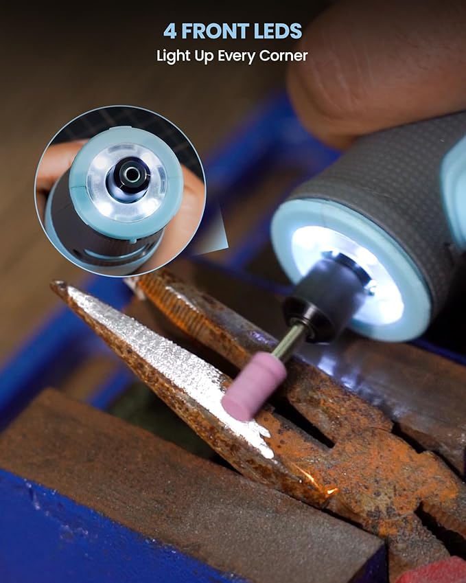 Rotary Tool Kit, Cordless Rotary Tool, 8V Rotary Tool with LED Lights, 5-Speed, 28000RPM, 2.0Ah Battery, 25 Accessories, for Carving, Engraving, Sanding, Polishing, Cutting and Pet Nails -