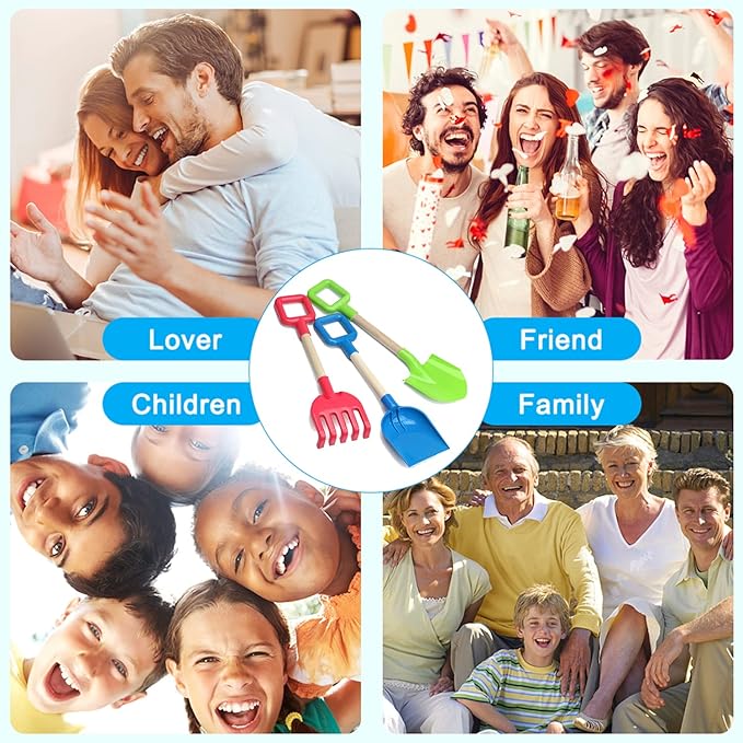 3 PCS Beach Shovel Sand Shovels Toys for Kids Adults, 16 Inch Spade Rake Sandbox, Sturdy Scoop Trowel Garden Digging Planting Tool Kit, Kids Snow Shovel Outdoor Play Summer Vaction Gift Party Favor -