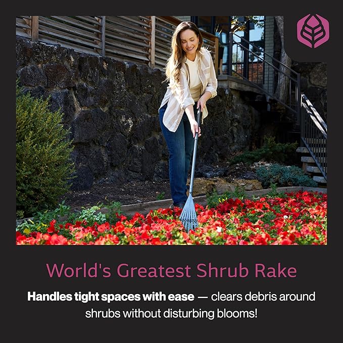Yard Butler World’s Greatest Shrub Rake | Heavy Duty All Steel Rake with Ergonomic Garden Claw, 20 Free-Floating Tines & Long Metal Handle – Lawn, Yard, Bed, Landscape for Leaves, Grass & Debris, 8" -