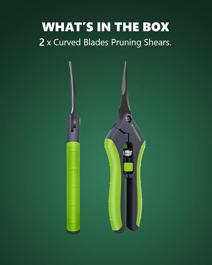 2pcs 6.5" Pruning Shears for Gardening, Ultra Sharp Garden Scissors for Precise Cuts, Stainless Steel Bonsai Clippers with Spring Loaded, 6.5 Inch Garden Shears (1pc Straight & 1pc Curved) -