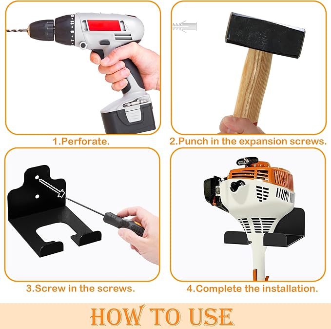 Weedeater Rack, 1 Pack Weed Eater Hanger, Weed Eater Rack for Wall, Heavy Duty Garden Tool Garage Organizer Trimmer Holder, Chainsaw Hanger Wall Mount(Orange) -
