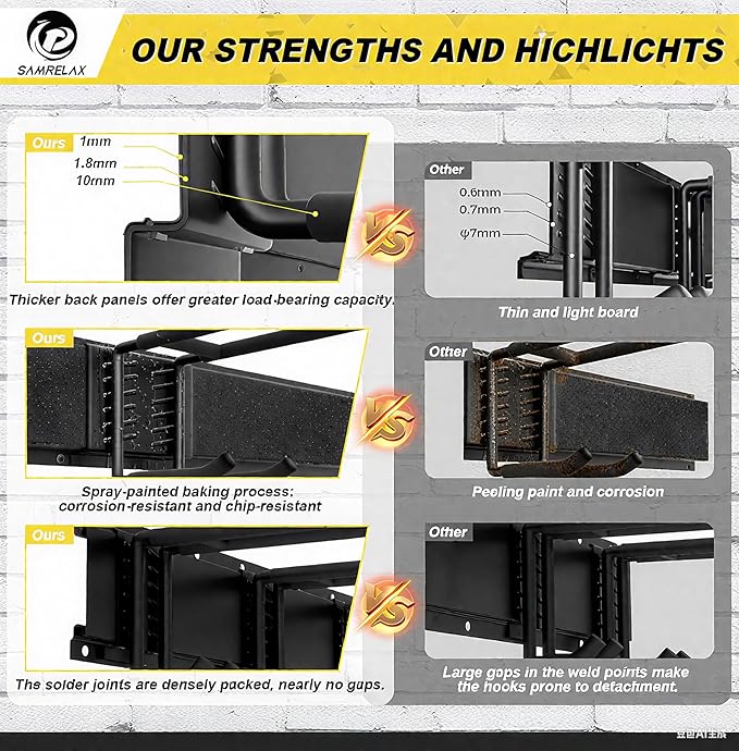 Upgraded Heavy Duty Trimmer Rack 2 Pack - Wall Mounted Garage Organizer, Power Tool Hanger for Weed Eater, Grass Trimmer, Hedge Trimmer, Leaf Blower, Chainsaw & Garden Tools Storage -