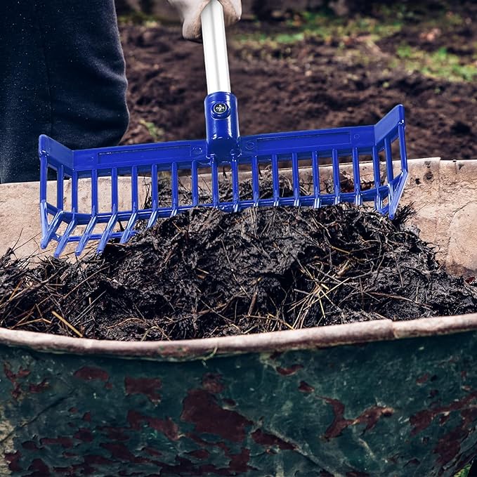 • Sturdy Structure: the pitchfork has a sturdy structure and better load bearing capacity; The manure fork head features angled tines to reduce spillage through the tines, reducing overall mess; The 18 claws are straight and hard, making it easy to handle any professional livestock cleaning job