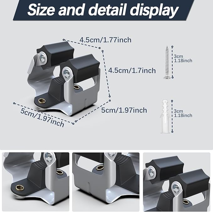 • PREMIUM QUALITY - The metal anti-rust Manganese Spring steel and the grip of the abrasion-resistant rubber keeps broom and dustpan,garden tools,yard tools,rake,shovels very well, with the anchor and screws supplied together, mop and broom holder wall mount can grip the mop handles for a long time without worrying the broom will fall off