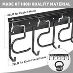 - SECURE AND FLEXIBLE HANGING OPTIONS: This mop and broom holder wall mount comes with a mix of fixed L-hooks and rubber-coated removable S-hooks—offering flexibility and a secure grip. The L-hooks support up to 33 lbs each, while the S-hooks can hold up to 66 lbs, making it easy to store even heavier garden tools without worry.