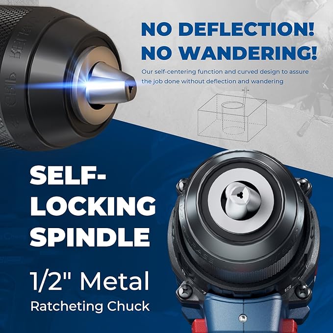 - High strength & Controllability: 1/2" high strength metal ratcheting chuck offers good bit retention and quick bit changes. Easy to control by 20+1+1 clutch setting to prevent overdriving or damaging as a ideal drill for delicate and heavy-duty task.