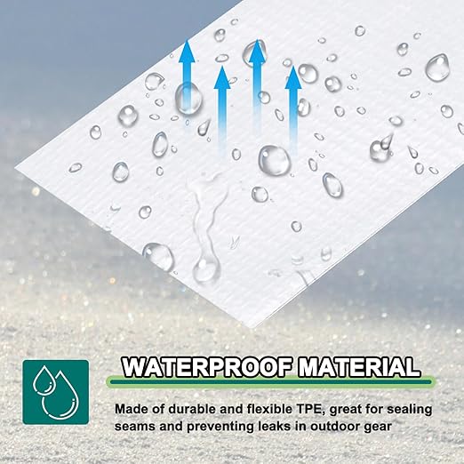 • Application: This PVC Tarpaulin Tape is perfect for repairing tarps, tents, awnings, canvas covers, boat covers, and more. It’s also great for sealing seams and preventing leaks in outdoor gear