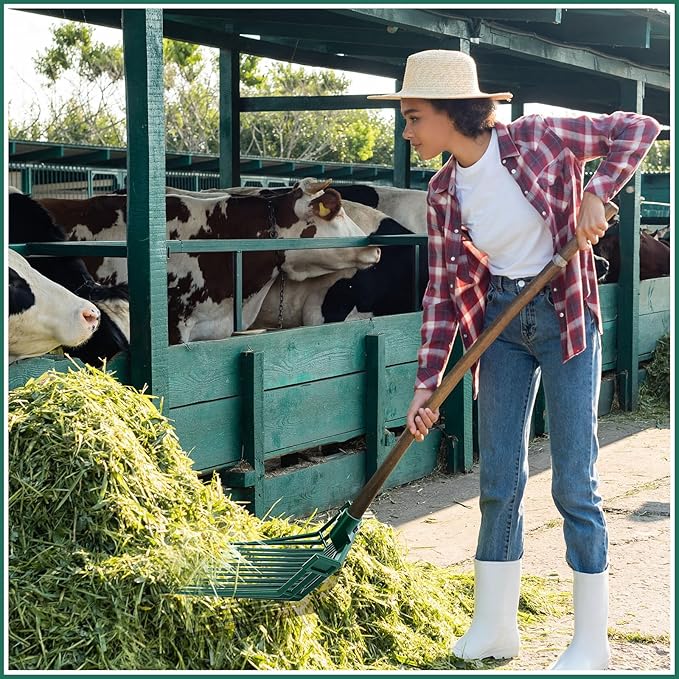 • Efficient Cleaning with Large Design: save time and effort with our manure fork featuring 12 teeth measuring 13 inches each; This large design allows for quick and efficient cleanup, making it for farm work; Its sturdy construction supports stable performance, offering a significant advantage in maintaining your livestock areas clean and organized